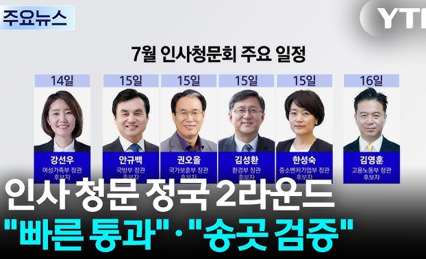 7월 14일(월)부터 18일(금)까지 예정된 인사청문회는 국회에서 진행되며, KBS, MBC, YTN, 연합뉴스TV, 국회방송(NATV) 등에서 생중계 또는 녹화중계될 예정입니다.